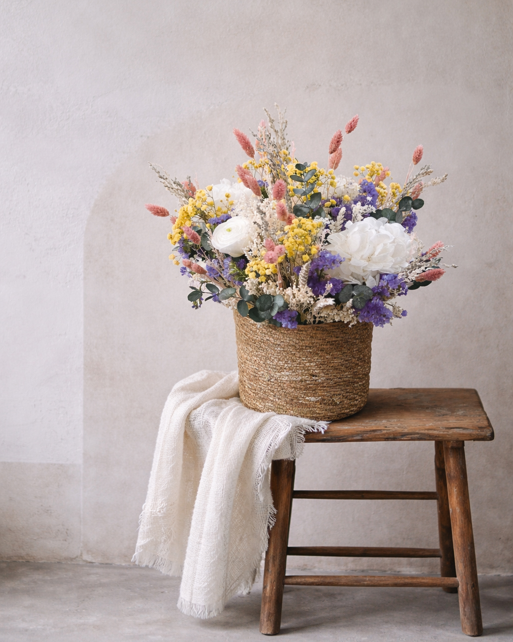 CESTO FLORAL PRESERVADO 01 85,00 € Desconto de %. IVA incluído. Partilhar Comprar Contactar 1 unidades em stock | SKU: CESTO FLORAL PRESERVADO REF.005 Cesto Floral Preservado. Dimensões: A: 35cm X D: 35cm Composição: - Flores e folhagens 100% preservadas. - Seleção de alta durabilidade. - Base em cesto natural. - Montagem manual Terracotta. Caraterísticas: - Mantém a cor e forma durante muitos meses. - Não necessita de água. - Ideal para presente ou dar um toque acolhedor ao ambiente. - Peça única, feita artesanalmente. Tags cesto floralcesto flores preservadasflores secasflores preservadas Características