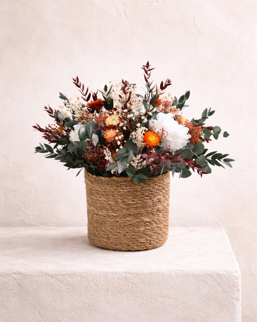 CESTO FLORAL PRESERVADO 07 75,00 € Desconto de %. IVA incluído. Partilhar Comprar Contactar 1 unidades em stock | SKU: CESTO FLORAL PRESERVADO 07 Cesto Floral Preservado. Dimensões: A: 35cm X D: 35cm Composição: - Flores e folhagens 100% preservadas. - Seleção de alta durabilidade. - Base em cesto natural. - Montagem manual Terracotta. Caraterísticas: - Mantém a cor e forma durante muitos meses. - Não necessita de água. - Ideal para presente ou dar um toque acolhedor ao ambiente. - Peça única, feita artesanalmente. Tags cesto floralcesto flores preservadasflores secasflores preservadas Características